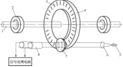 是光栅的节距,N是光栅盘的窄缝的条数。轴承2和转轴1,光敏元件和放大整形电路等。