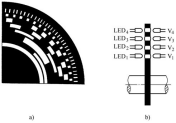 a)结构简图 b)4位二进制码盘 c)4位格雷码盘