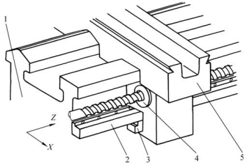 1—床身 2—光栅尺 3—数读头 4—滚珠丝杠螺母副 5—床鞍