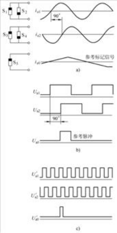 a)正弦测量信号 b)整形后的测量信号 c)5倍频处理后的测量信号