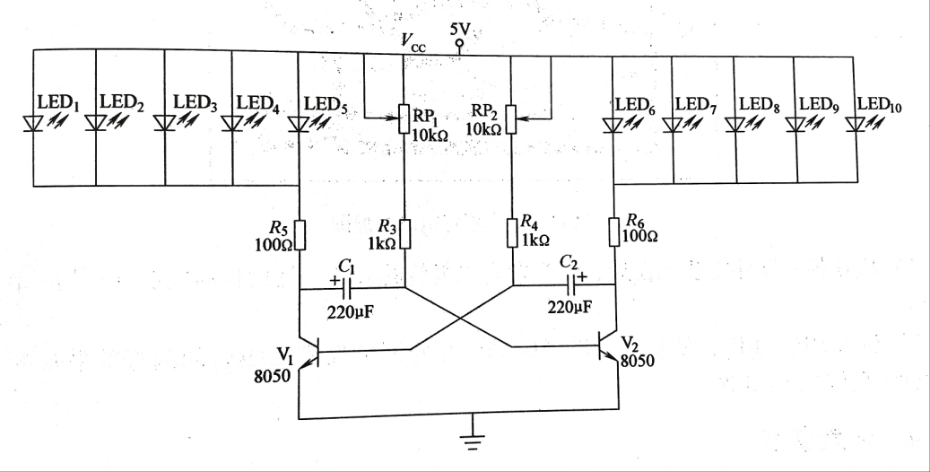 认识简易广告彩灯电路原理图,根据原理图列写元件清单。