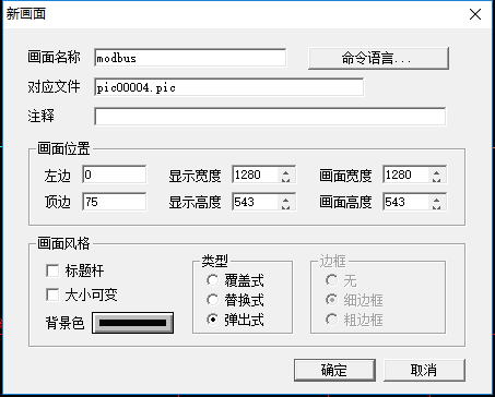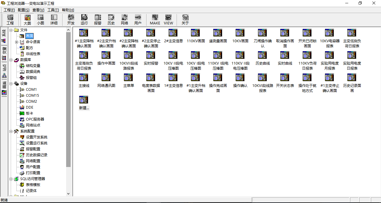 (1)在配置完系统的平台和变量之后,我们需要为其配置一个可视化的操作界面,方便使用者能够通过界面更直接地看到设备的状态变化,及时对设备产生的变化进行反应操作。通过工程浏览器的画面列表,进行新画面的创建。