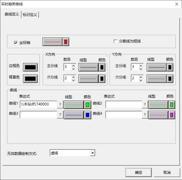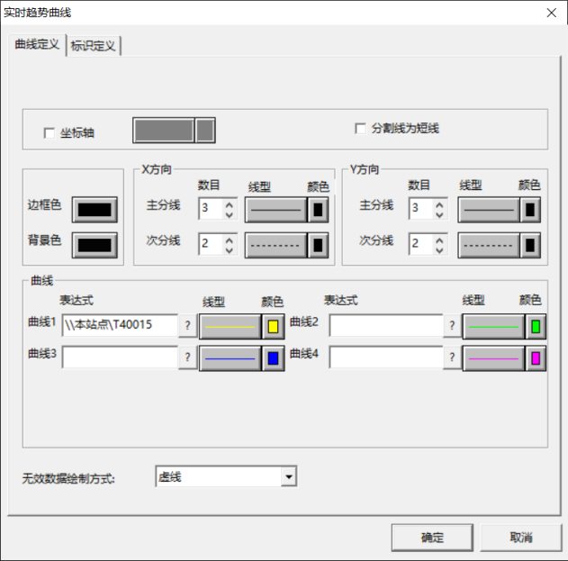 (9)最后我们需要对变量电压、电流、脉冲信号等变量进行曲线定义和标识定义,因为三种类型的变量跳变的范围都互不相同,所以他们所对应的实时监控图需要单独设置上限、下限和间隔位数,接着设定刷新时间为1s,实时监控变量变化。