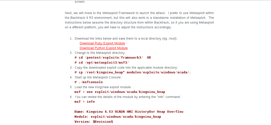 This module exploits a buffer overflow in Kingview 6.53. By sending a specially