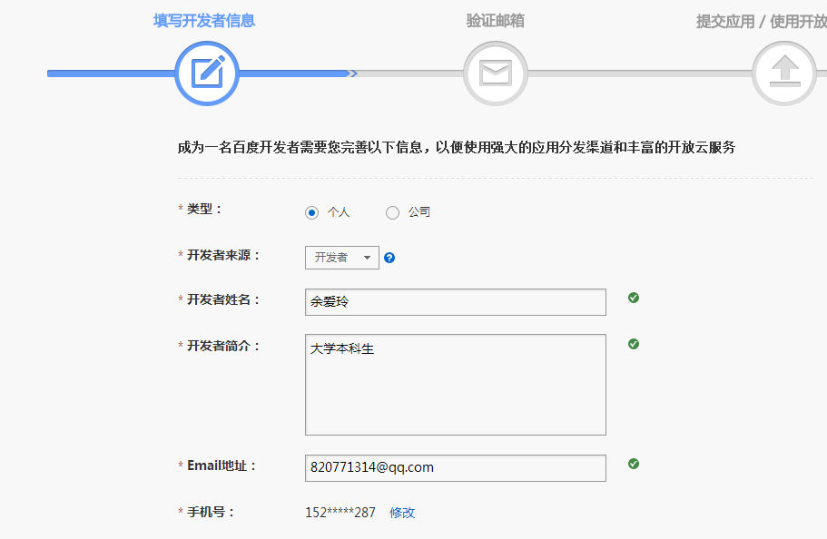 (2)注册成为百度地图开发者
