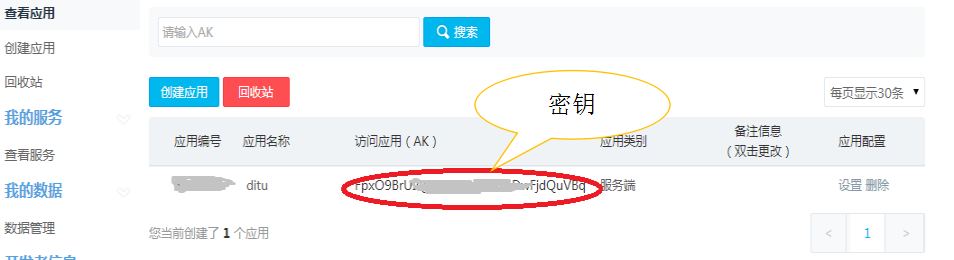 (3)获取密钥,通过创建应用获取密钥