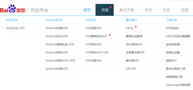 (1)登录百度地图API首页,网站为:http://lbsyun.baidu.com/