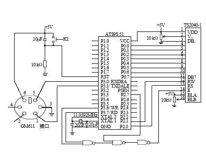图1-3 采集与显示GPS定位信息系统的电路原理图