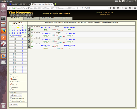 入侵者会使用加密工具来保护他们的传输通道,监视者如果没有密钥,基于网络的数据捕获工具将无法察看传输的数据,因此采用基于内核的Sebek来捕获数据。