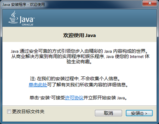 (2)运行jre-8u40-windows-i586,出现欢迎界面。