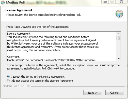 (2)下载ModbusPollSetup.exe(ModbusSlaveSetup.exe)并安装,阅读并同意安装协议。