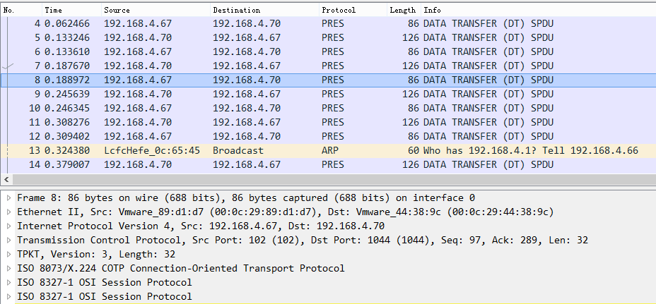 选择的软件:Wire Shark,使用Wire Shark抓取IEC61850-5-104的数据包。