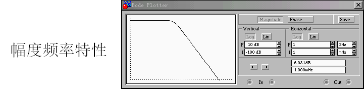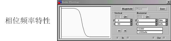 双击波特图仪图标打开其面板,然后单击仿真启动开关,在波特图仪的显示屏幕上可以观看电路的幅度频率特性和相位频率特性曲线。曲线如下两图所示。