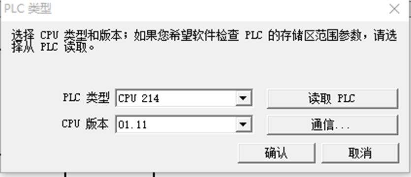 弹出PLC类型对话框查看PLC版本和类型