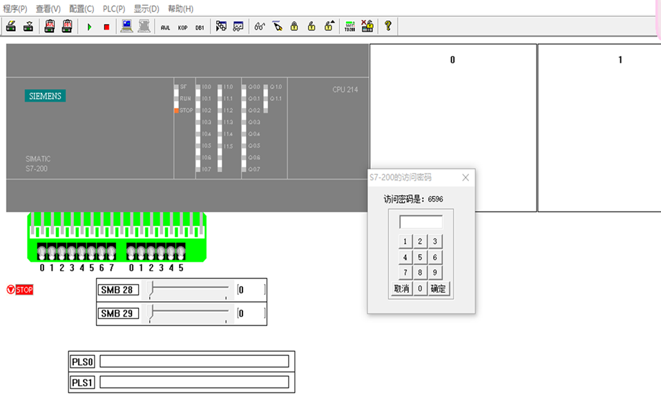 PLC进入运行状态,点击下面一小排输入的小开关,给PLC输入信号,就可以仿真。