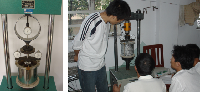 ②先在贯入杆上施加45N荷载,然后将测力和测变形的百分表的指针都调整至零点。