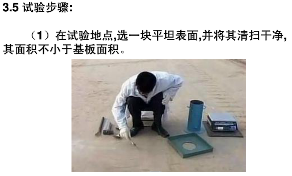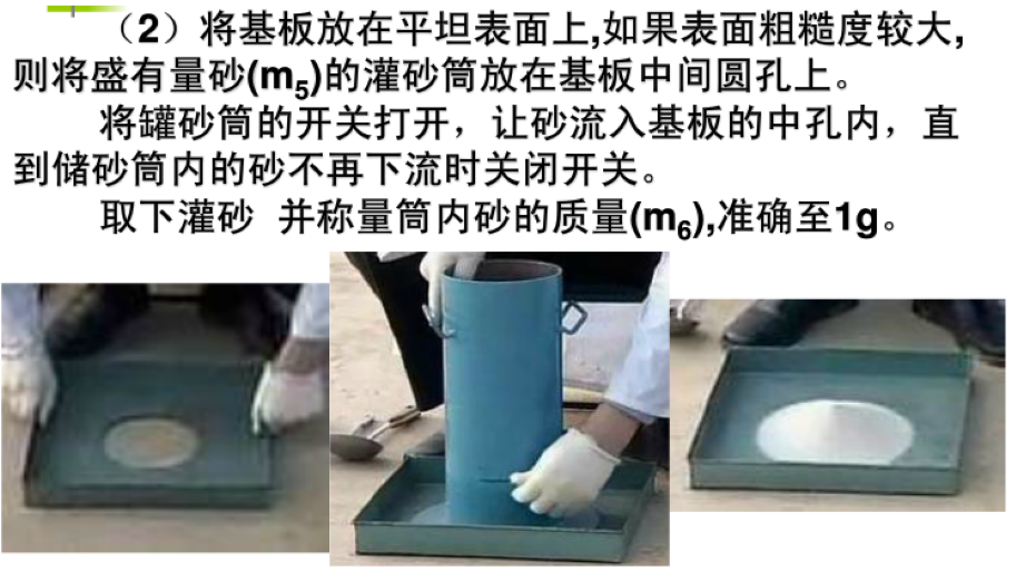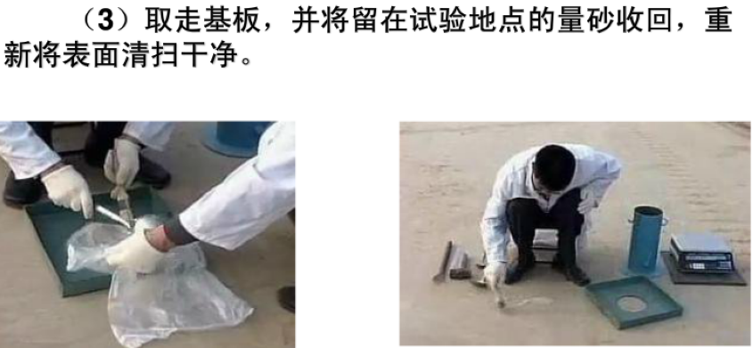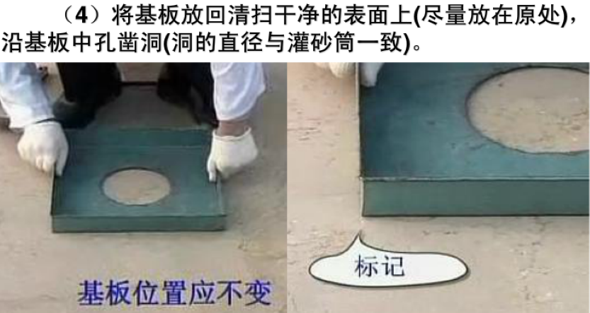 2.取走基板,将留在试验地点的量砂收回,重新将表面清扫干净