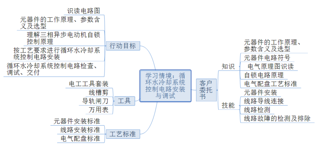 胜利弹簧厂车间安装了一台新设备,设备运行需要冷却水才能正常工作,冷却塔、循环水泵及 管路部分已经安装完成,现在需要安装循环水泵控制电路并完成功能调试。
