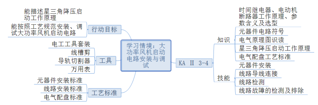 请您选择符合要求的空气断路器、电动机断路器、接触器、时间继电器等电气元件,按照电路图,完成大功率风机启动电路的安装与接线。完成配盘安装工作后,若出现故障,应能及时排除。 工作过程要遵循“6S”行为规范。