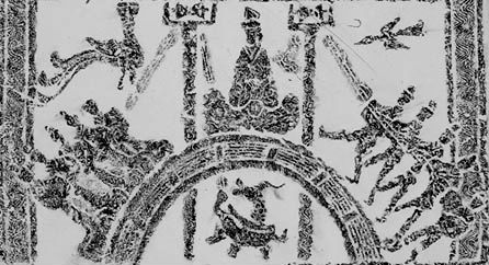 图画中央还刻有一座拱桥,桥上有一贵人,正在观看这次捞鼎的工程场面。他大约是总管捞鼎的高官。