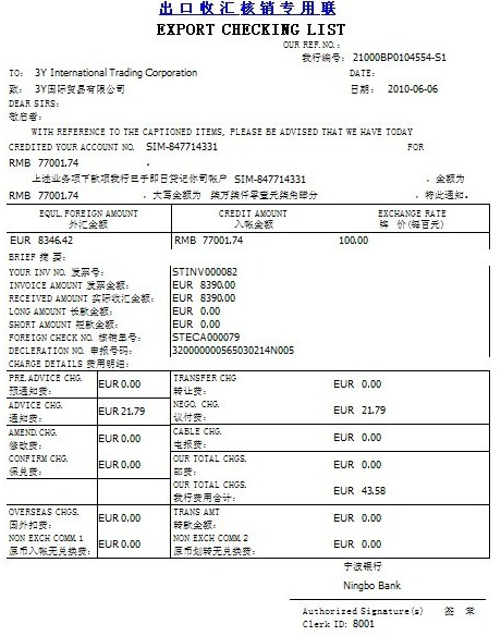 (5)与此同时,外管局盖章后返还出口收汇核销单第三联,用以出口退税。