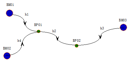 为便于表达和存储水准网数据信息,需要对牵涉到的变量进行事先设计约定,变量约定的原则是便于表达,便于认知水准网信息。
