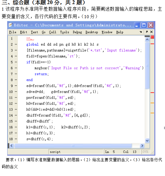 测量平差程序设计 课程期末考试