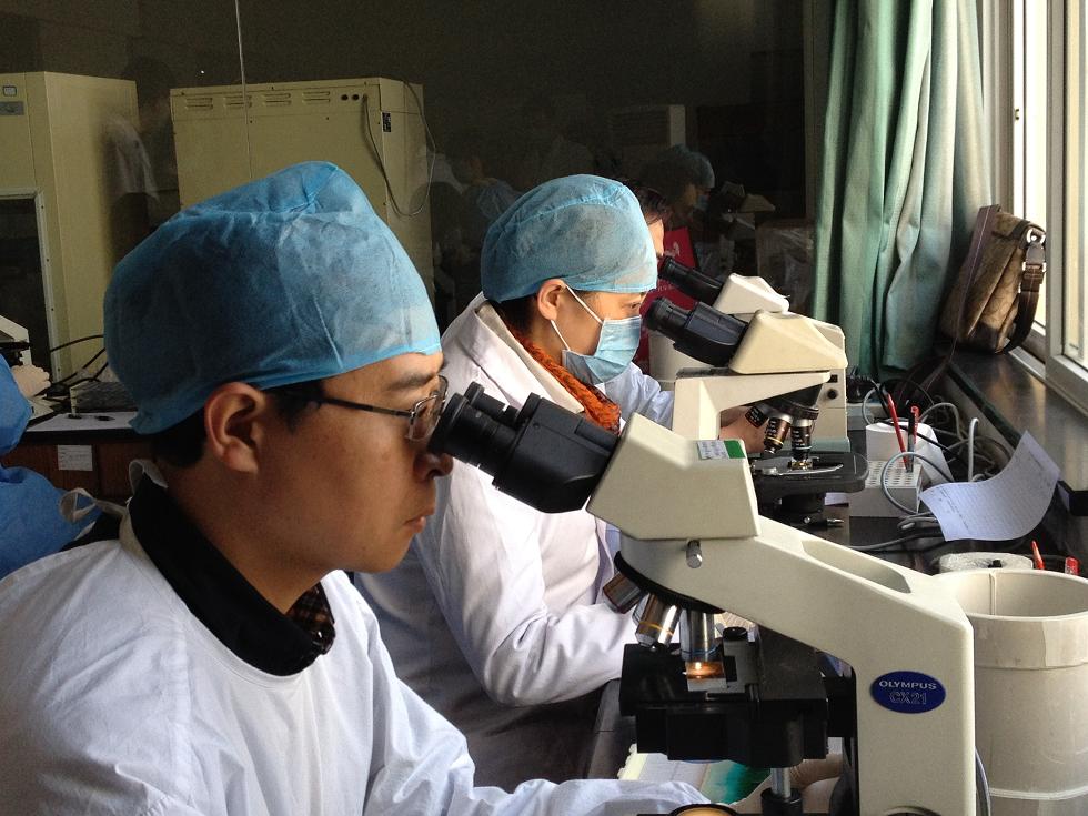 疾控人员正在寄生虫制片