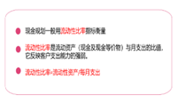 在进行现金规划时,可采用流动性比率指标进行分析。流动性比率是流动资产(现金及现金等价物) 与月支出的比值,它反映客户支出能力的强弱。