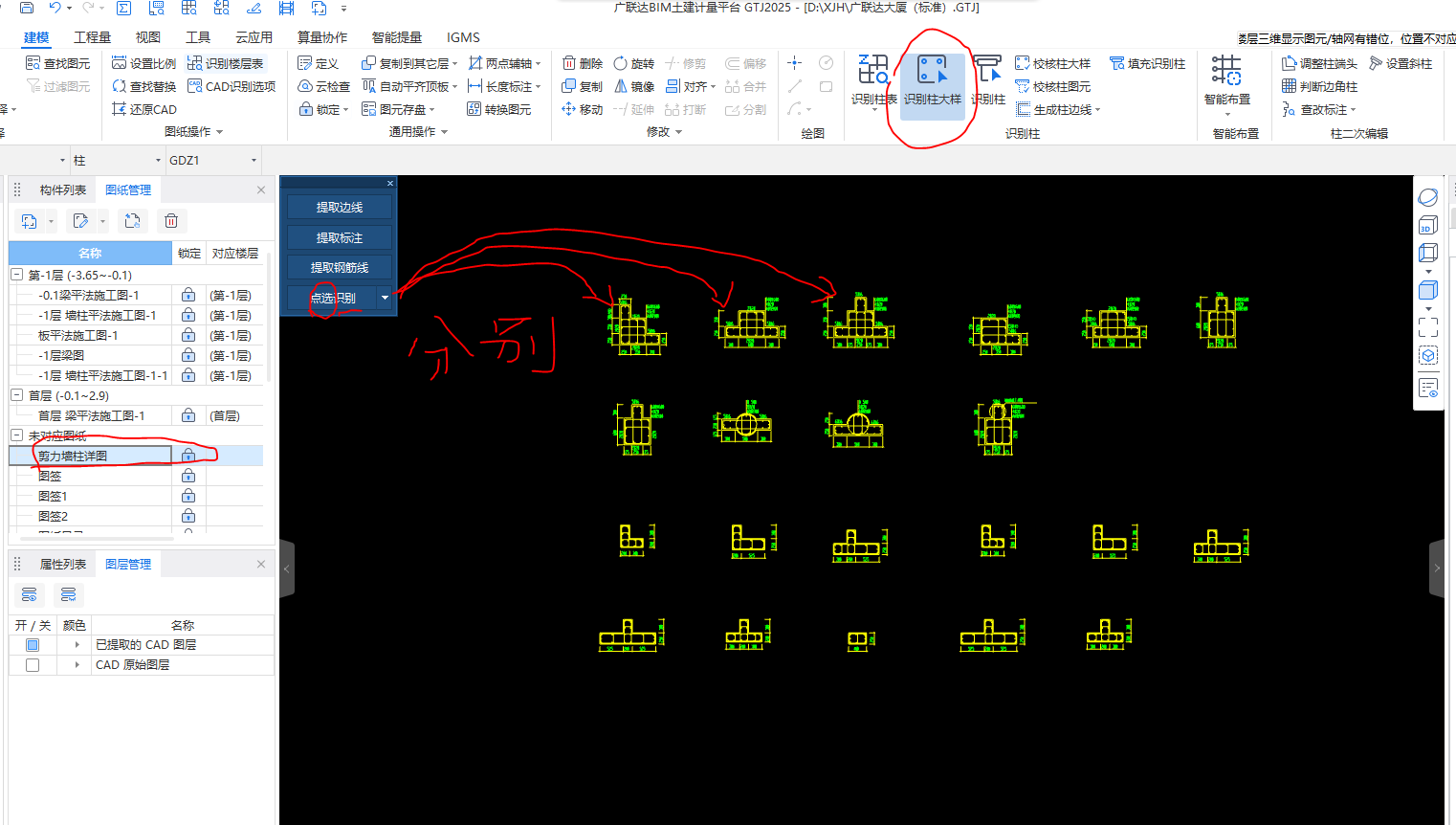 识别方法:识别柱大样