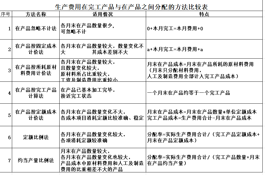 该方法的基本特点是:基本生产成本明细账中归集的产品成本,全部由本月完工产品负担,月末在产品不分担。它适用于各月在产品数量很少的产品。因为,各月在产品数量很少,那么月初和月末在产品的成本就很小,月初在产品成本与月末在产品成本的差额更小,因而算不算各月在产品成本对于完工产品成本的影响也就很小。所以,在计算完工产品成本时,可以将期末在产品忽略不计。