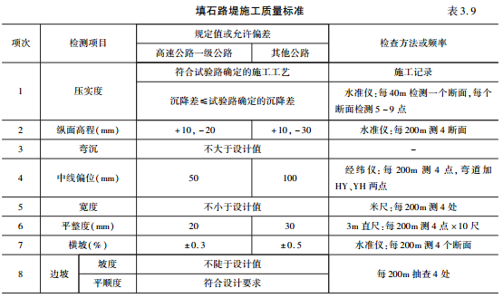 (1)压实质量标准、施工质量标准分别见表 3. 8、表 3. 9ꎮ