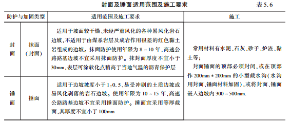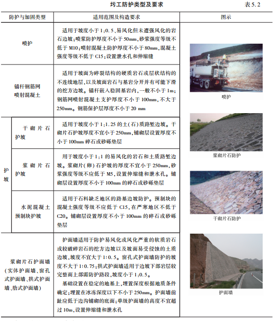 2. 圬工防护 圬工防护有喷护、锚杆挂网喷浆(混凝土)、护坡、护面墙等类型ꎬ圬工防护的构造及要求 见表 5. 2ꎮ