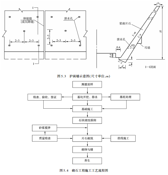 (6)浸水挡土墙施工ꎮ 浸水挡土墙应选用坚硬未风化且浸水不崩解的石块ꎬ与岸坡的衔 接要平顺ꎬ同时满足挡墙施工的其他要求ꎮ