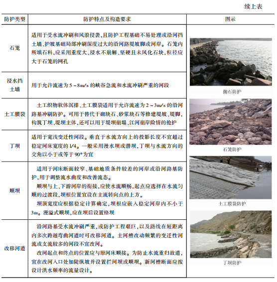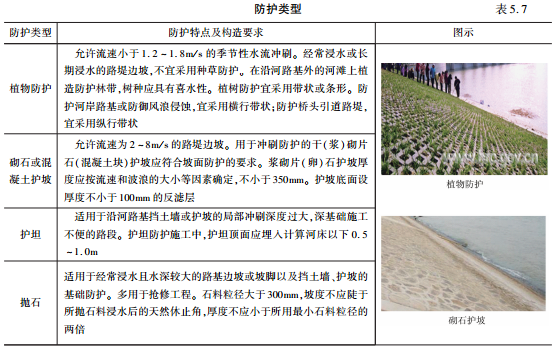 冲刷防护按照受力特点可分为直接防护与间接防护两大类ꎬ具体防护类型及要求见表5. 7ꎮ