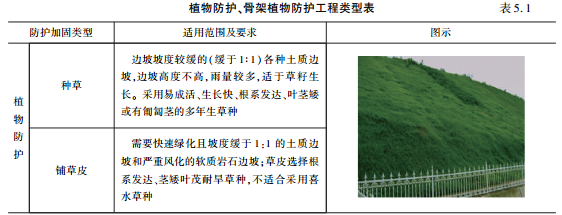 植物防护与骨架植物防护类型及适用情况见表 5. 1ꎮ
