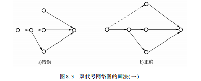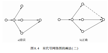 (1)一个网络图只允许有一起始点节点和一个终点节点(图 8. 3、图 8. 4)ꎮ