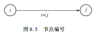 网络图的节点编号不能重复ꎬ一项工作只能使用唯一 的代号ꎮ 不允许出现相同编号的节点或相同代码的工作ꎮ 一条箭线的箭头节点编号要大于箭尾节点编号(图 8. 5)ꎮ