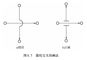 (5)网络计划布局应合理ꎬ使图面整齐美 观ꎬ避免箭线交叉ꎬ当箭线的交叉不可避免 时ꎬ可用“暗桥”法、“断线”法处理ꎬ见图 8. 7ꎮ