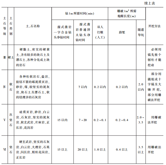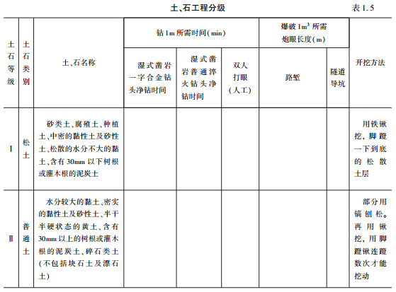 (1)在施工中ꎬ路基土石按其开挖的难易程度分为 6 级ꎬ如表 1. 5 所示ꎮ