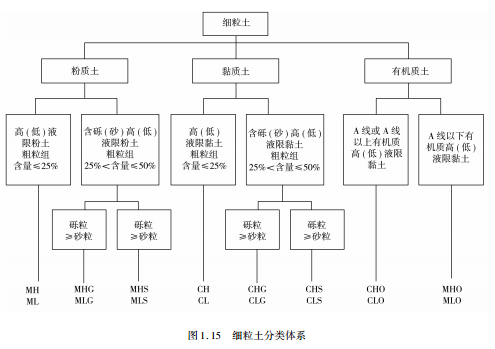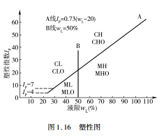 细粒土应按照其在塑性图(图 1. 16)中的位置确定土的名称: