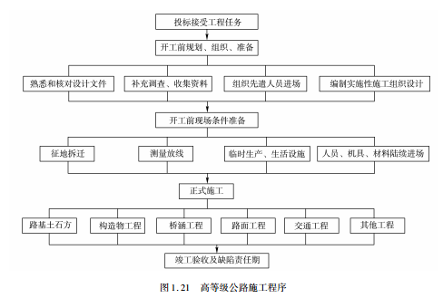 施工单位从投标接受施工任务到竣工验收ꎬ大致要经过如图 1. 21 所示的几个阶段ꎮ