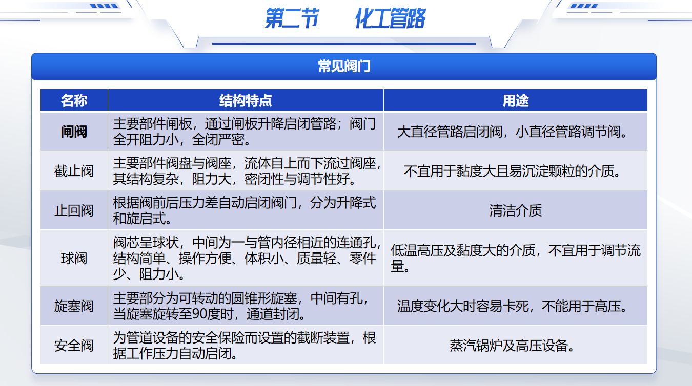 一、了解化工管路中常用阀门的作用