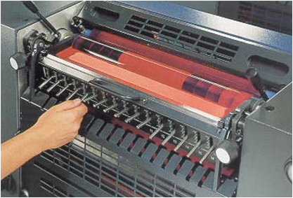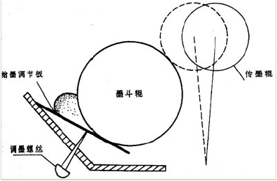 给墨量调节:由给墨调节板(即墨斗刀片)与墨斗辊之间的间隙和墨斗辊转速所控制。