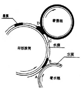 输水装置的任务是供给印版空白部分一层均匀的水膜。输墨装置的任务是给印版的图文部分涂上一层厚度均匀的墨膜,这个任务完成愈出色,印刷品的质量愈好,因为在压印区域内,油墨的转移取决于给墨量。