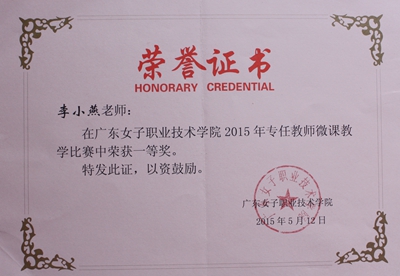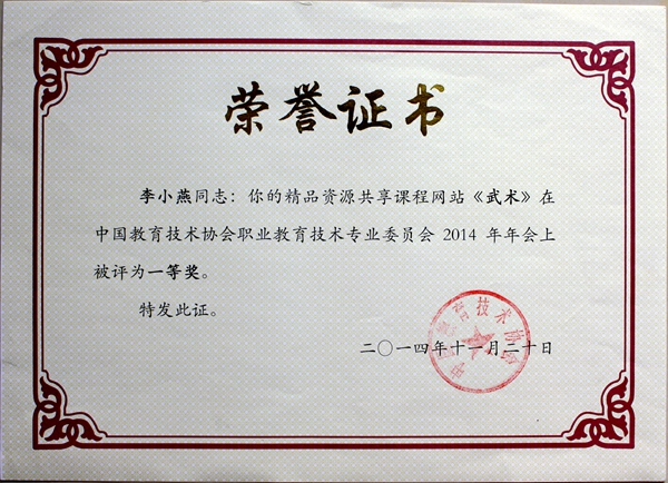 五、武术荣获广东女子职业技术学院信息化教学设计二等奖