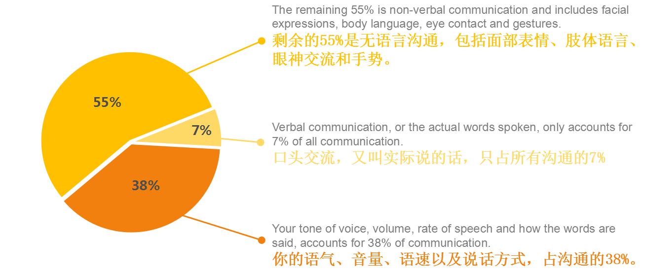 根据Albert Mehrabian教授的深入研究,沟通行为由三要素组成。