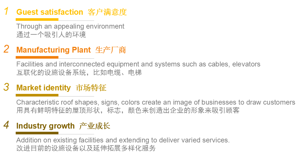 设施设备在接待业中扮演着一个具有决定性又多样化的角色,其中包括: