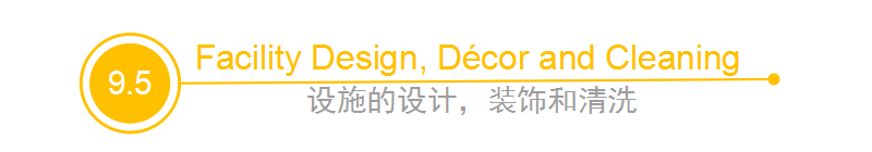 除了吸引人的设计装潢,餐饮设备应保持清洁并符合相关的卫生法律。