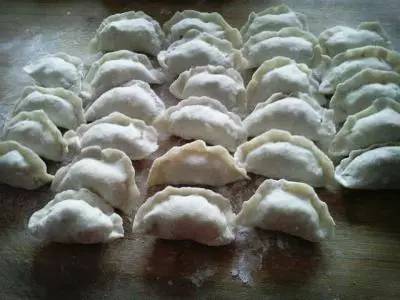 3、然后用擀好的面皮包成饺子,下锅煮熟后,沾上蒜醋汁食用,其味鲜美。在新疆,苜蓿饺子已成为南北地区各族群众普遍喜好的春季美食之一。